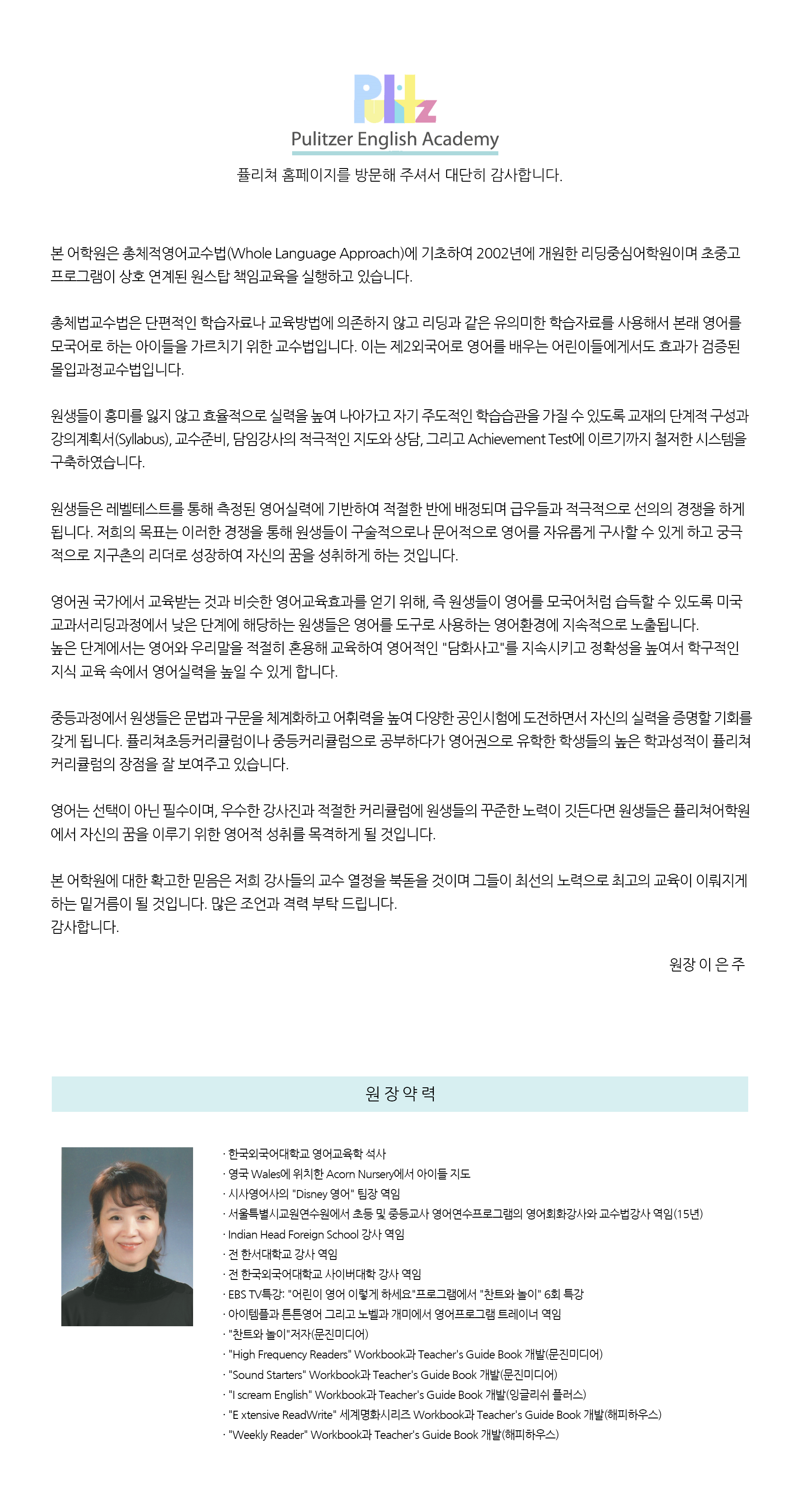 퓰리처영어학원소식
